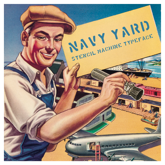 Original typeface family created by hand-stamping stencils using a WWII-era stencil machine, then meticulously digitizing each letterform to perfectly match the characteristics of the machine.