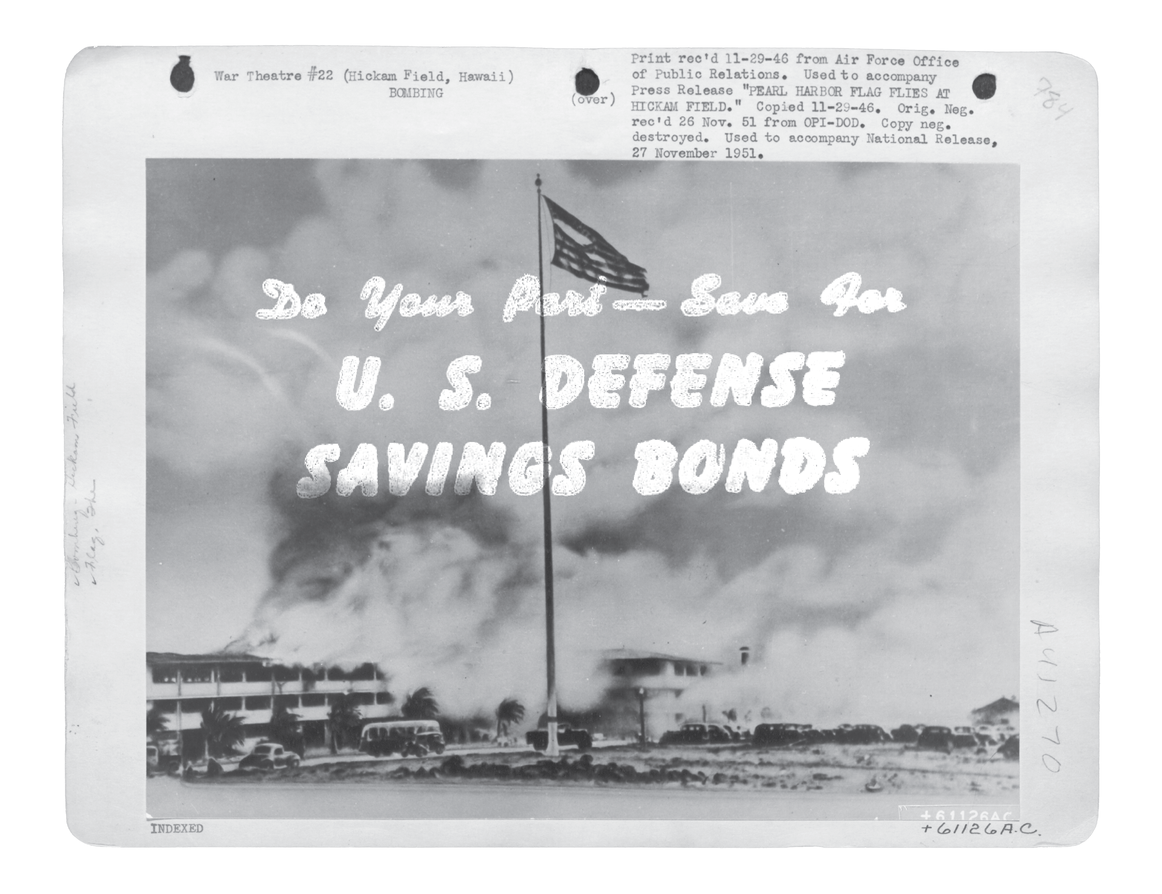 Series of images made for American Objects in honor of Pearl Harbor Remembrance Day 2022. Collage elements created with original Department of Defense images from shortly after the attack, and litho graphics from a 1940s War Bonds bank.